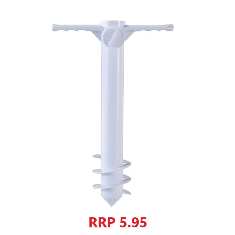 Simply twist in the anchor into the sand so it is level with the ground and place your umbrella in. Screw in the side to secure and enjoy your shade!