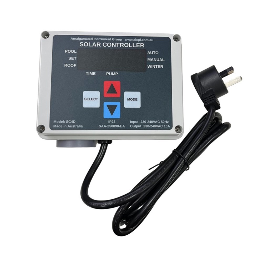 This Solar Controller is micro-processor based and works by sensing the temperature on the roof and the temperature of the pool. This controller is suitable for both integrated and independent systems, and will work with your solar pool heating system whether you have pool heating provisions or not.