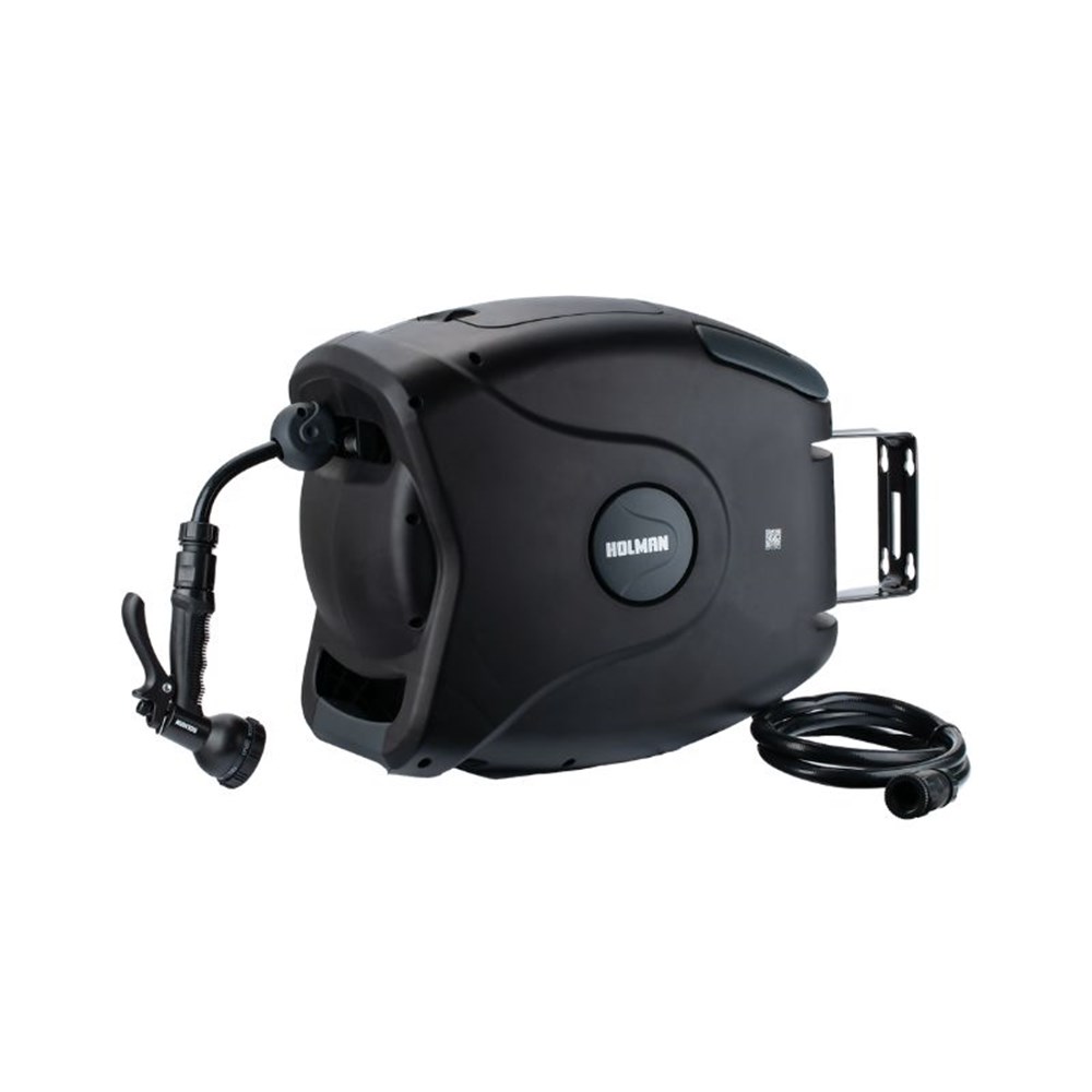 The 20m Deluxe Retractable Hose Reel is a premium and convenient addition to the garden, combining functionality with aesthetic appeal. This high-quality hose reel automatically coils back into its housing after use making hand watering easy. Including a 180° swivel metal bracket for easy manoeuvrability, and a 20m replaceable garden hose.